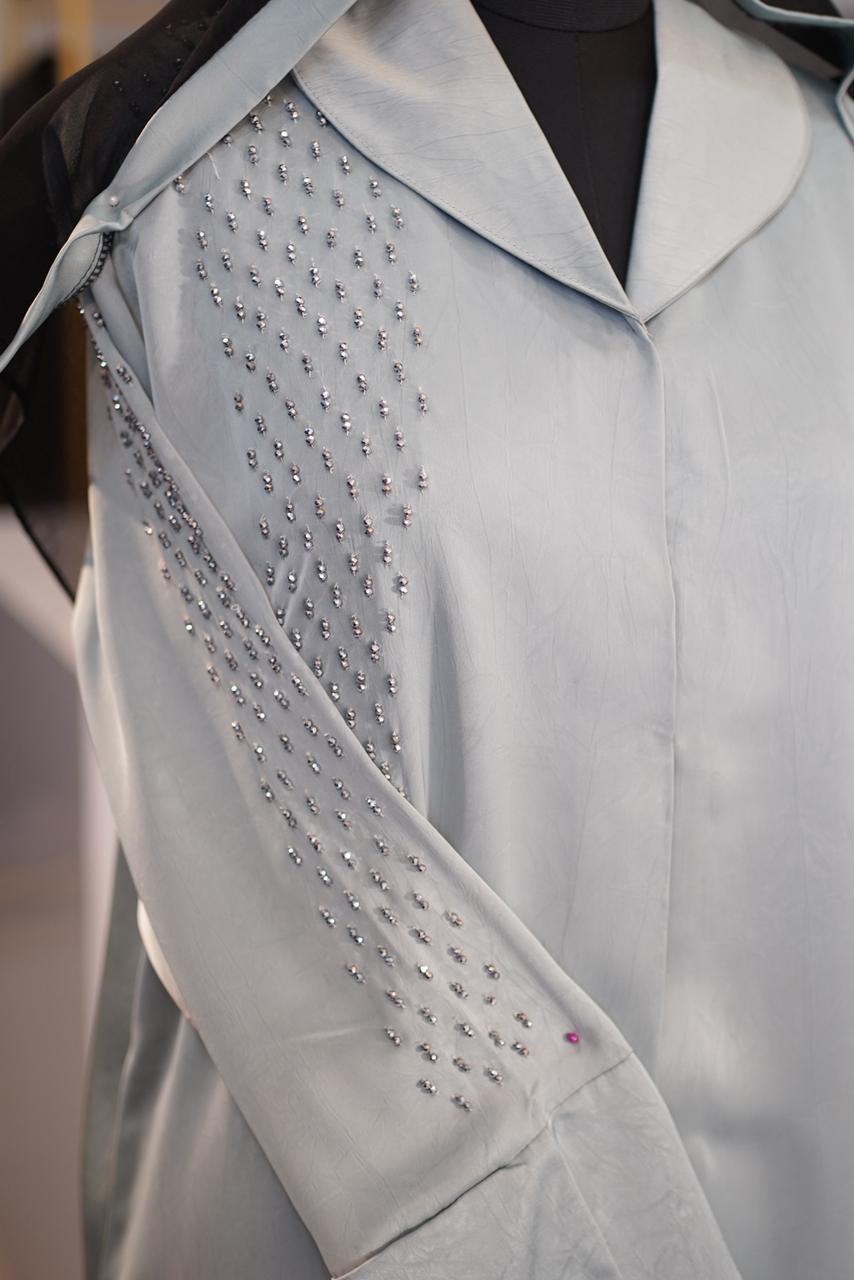 Expertly crafted in India with an eye for international design standards, this abaya ensures durability and a high-end feel. The combination of the unique suite collar and hand-detailed accents makes it a standout choice for the modern 2026 wardrobe.